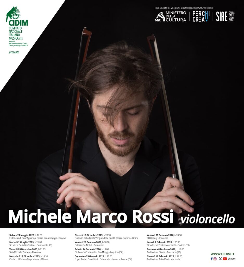 24/03/2026 — Tour nazionale del violoncellista Michele Marco Rossi - CIDIM Comitato Nazionale Italiano Musica ETSProgetto vincitore del programma "Per Chi Crea"…