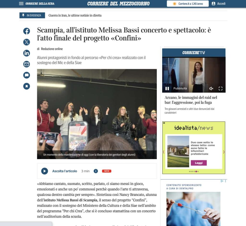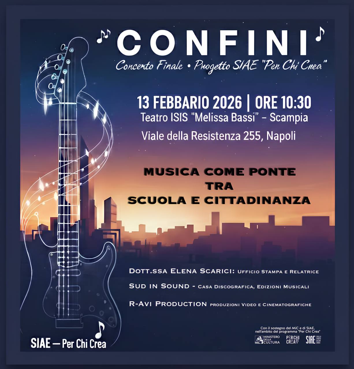 il senso del progetto “Confini”: «Abbiamo cantato, suonato, scritto, parlato, ci siamo messi in gioco, emozionati e anche un po’ commossi perchè quando l’arte ti attraversa, qualcosa dentro cambia per sempre». Nancy Brancatoì , alunna dell’istituto Melissa Bassi di Scampia, https://youtu.be/cvP7yZd1Waw