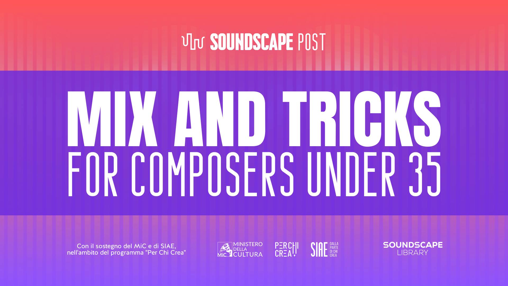 Mix and Tricks for Composers Under 35 è un progetto di formazione ideato da Alessandro Bianchi, professionista dell’audiovisivo e docente con esperienza decennale. La sua prima edizione ha visto l’avvio nell’autunno 2025 e si è conclusa il 28 febbraio 2026. Il corso, gratuito e della durata di 252 ore, nasce per offrire un’approfondita preparazione sulle tecniche audio: dalla registrazione al mix, con un’attenzione particolare alla spazializzazione del suono. Una serie di appuntamenti negli spazi di Soundscape Library a Roma (Pigneto) per affiancare agli studi musicali tradizionali gli strumenti necessari alla produzione di provini professionali.