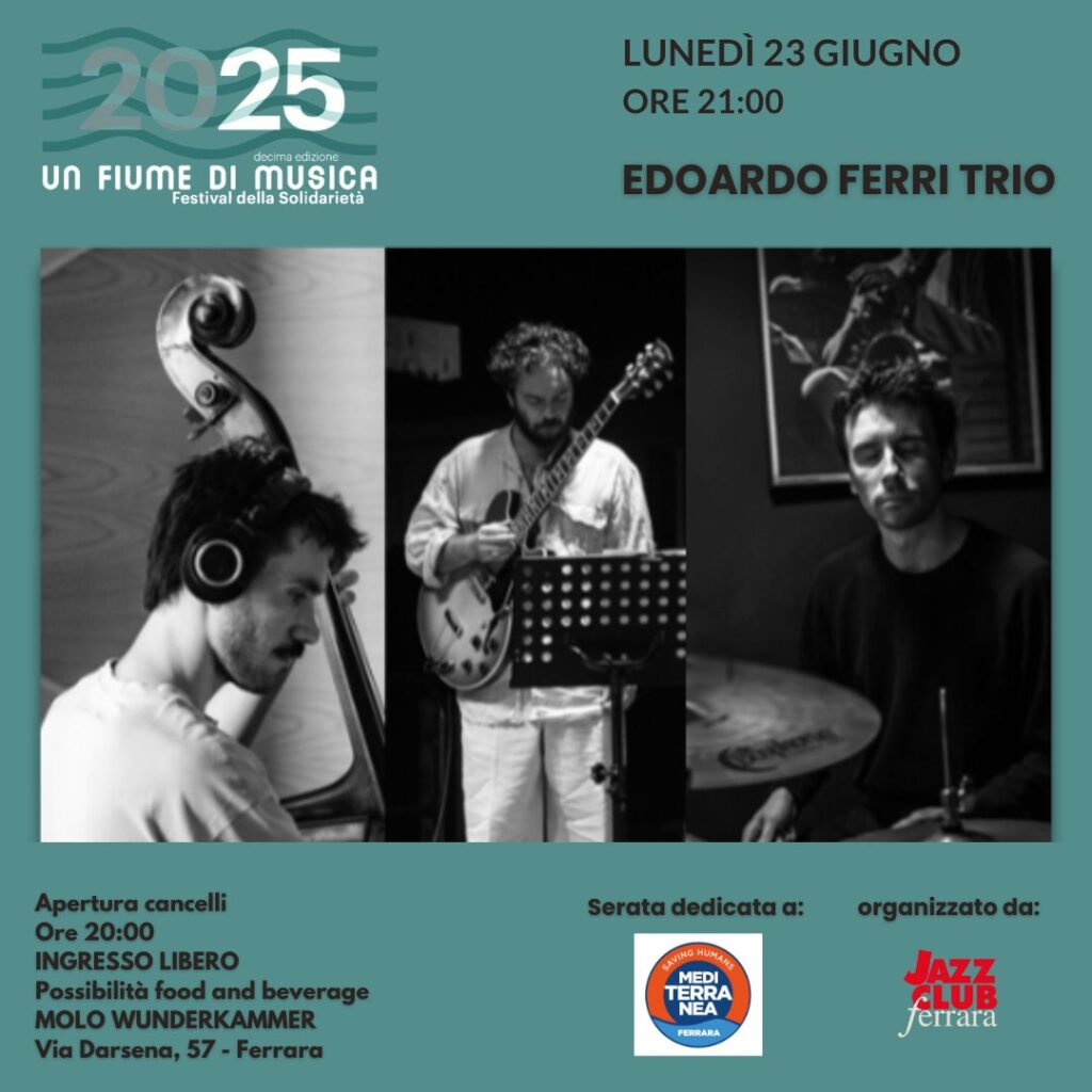 Ad aprire il programma, il 23 giugno, è l’Edoardo Ferri Trio, che porta sul palco un’idea di musica aperta e in continuo divenire. Standard jazz, composizioni originali e riletture estemporanee si intrecciano in un dialogo libero, guidato dalla centralità della melodia e da un ascolto reciproco profondo.