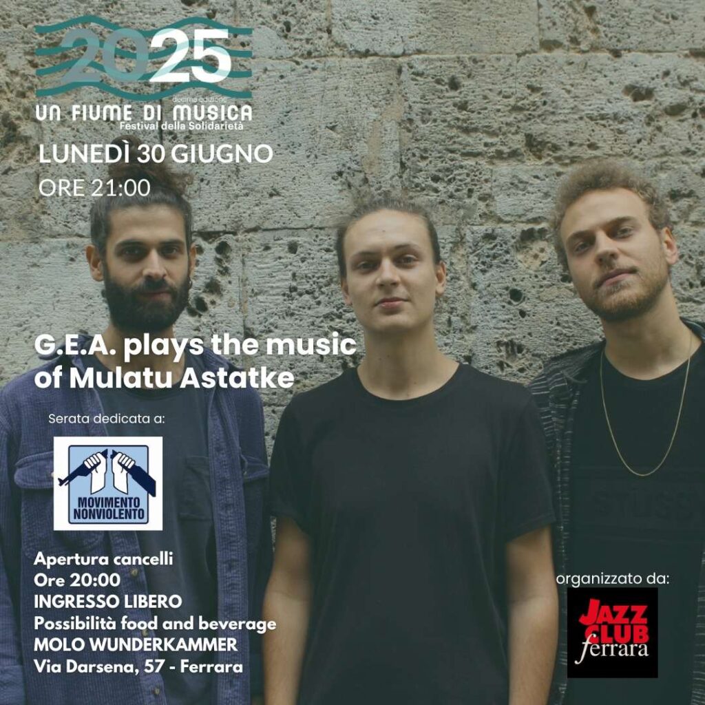 Il 30 giugno è la volta del trio G.E.A., con un omaggio all’universo dell’ethio-jazz e alle composizioni di Mulatu Astatke. Attraverso l’improvvisazione, il gruppo costruisce paesaggi sonori sospesi e suggestivi, in cui emergono echi delle radici africane del jazz e nuove possibilità espressive.
